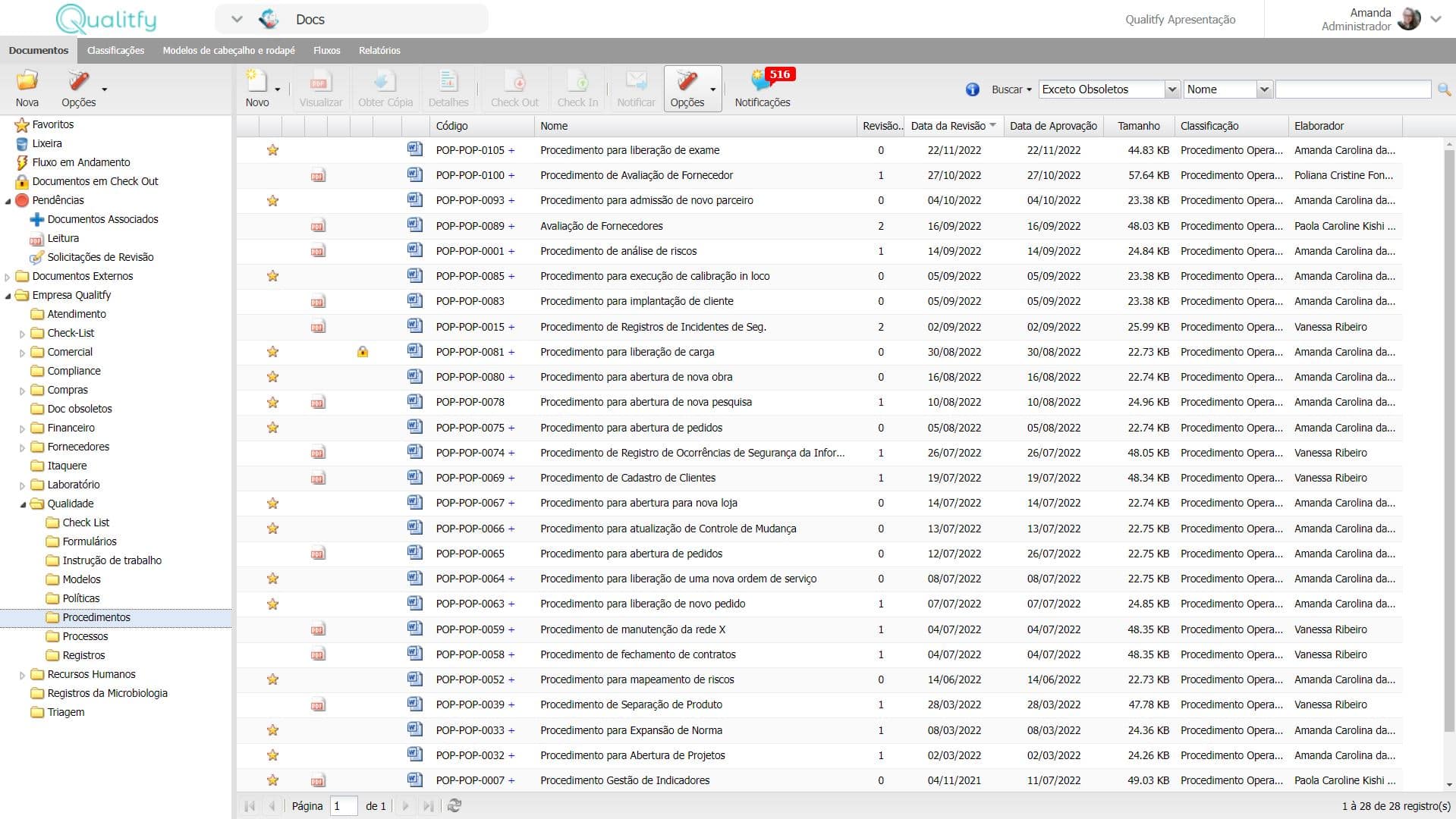 - Controle de processos, documentos e projetos e tudo o que compõe o SGQ.